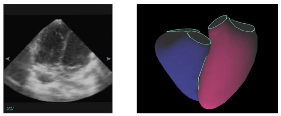 to reconstruct the cardiac chambers. This approach is not only faster but also significantly more comfortable for patients, as it minimizes the time needed for probe manipulation and breath holding. By matching endocardial landmarks against a validated library of heart shapes, VMS+ provides reliable, non-invasive measurements that match the accuracy of cMRI. “KBR is an accurate, versatile, and time-saving method for right ventricular three-dimensional volumetry; it shows excellent reproducibility for RT3DE and CMR data sets.”*